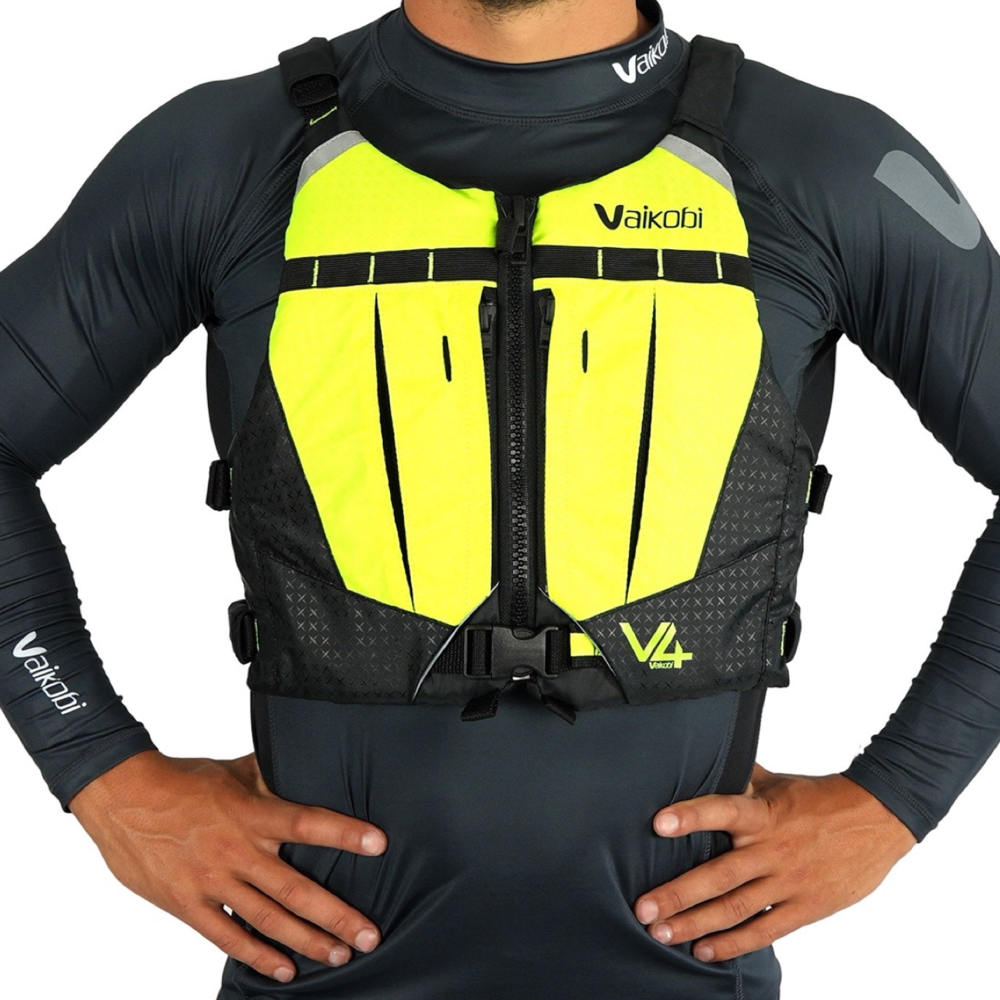 The Vaikobi V4 OCEAN RACING PFD feature front zip pockets a mesh gusset and heavy duty plastic vislon zippers for added durability. These front pockets provide 40% more storage capacity compared to previous versions.